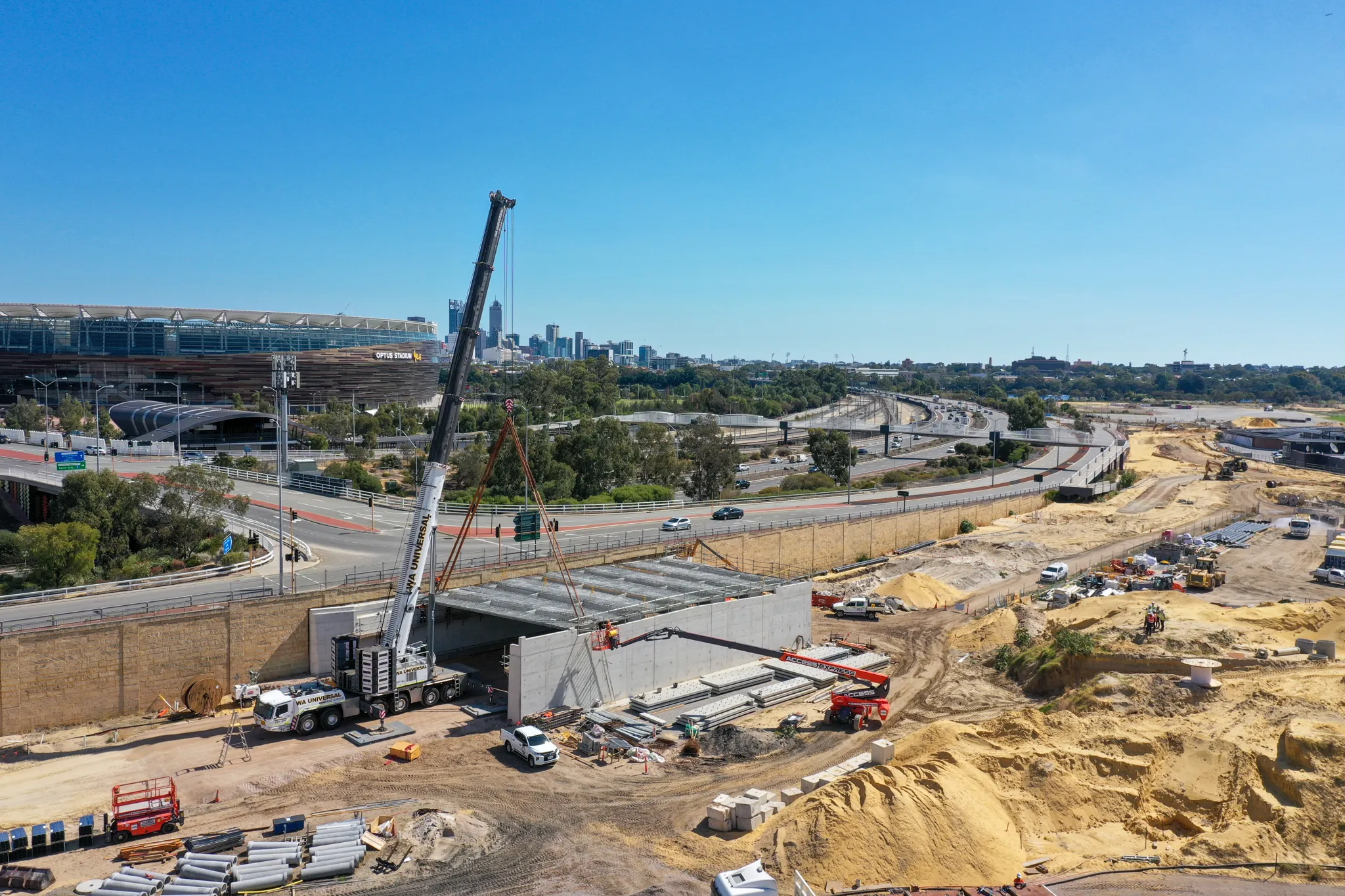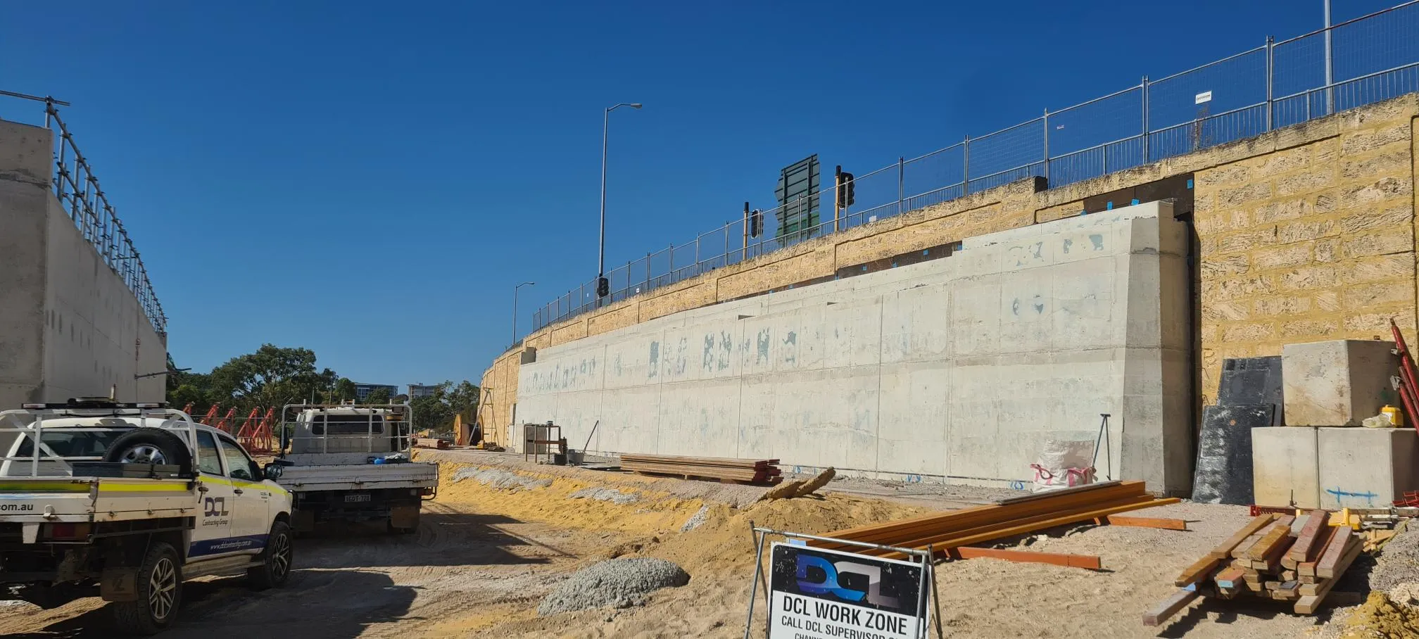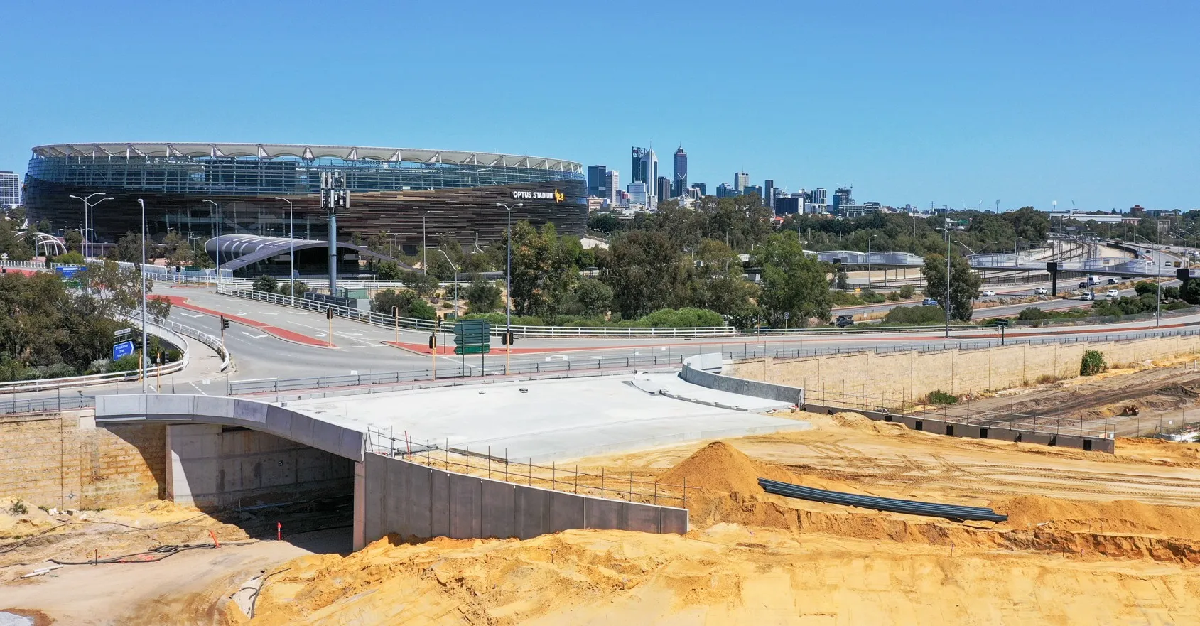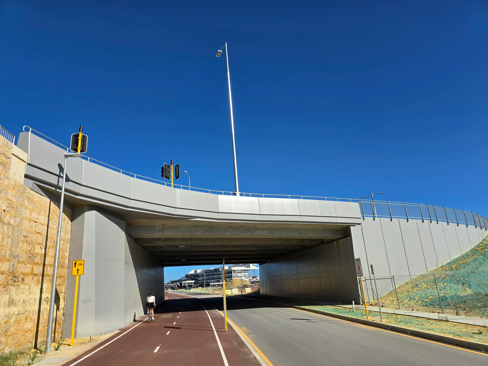 DCL were contracted by Civcon Civil & Project Management for the construction of the new bridge structure which would facilitate 4 lanes of traffic once opened. This bridge will function as a link form the existing bridge crossing over the Graham Farmer Freeway and will serve as the future access for traffic and pedestrians accessing the new development planned for the Belmont Racetrack area.