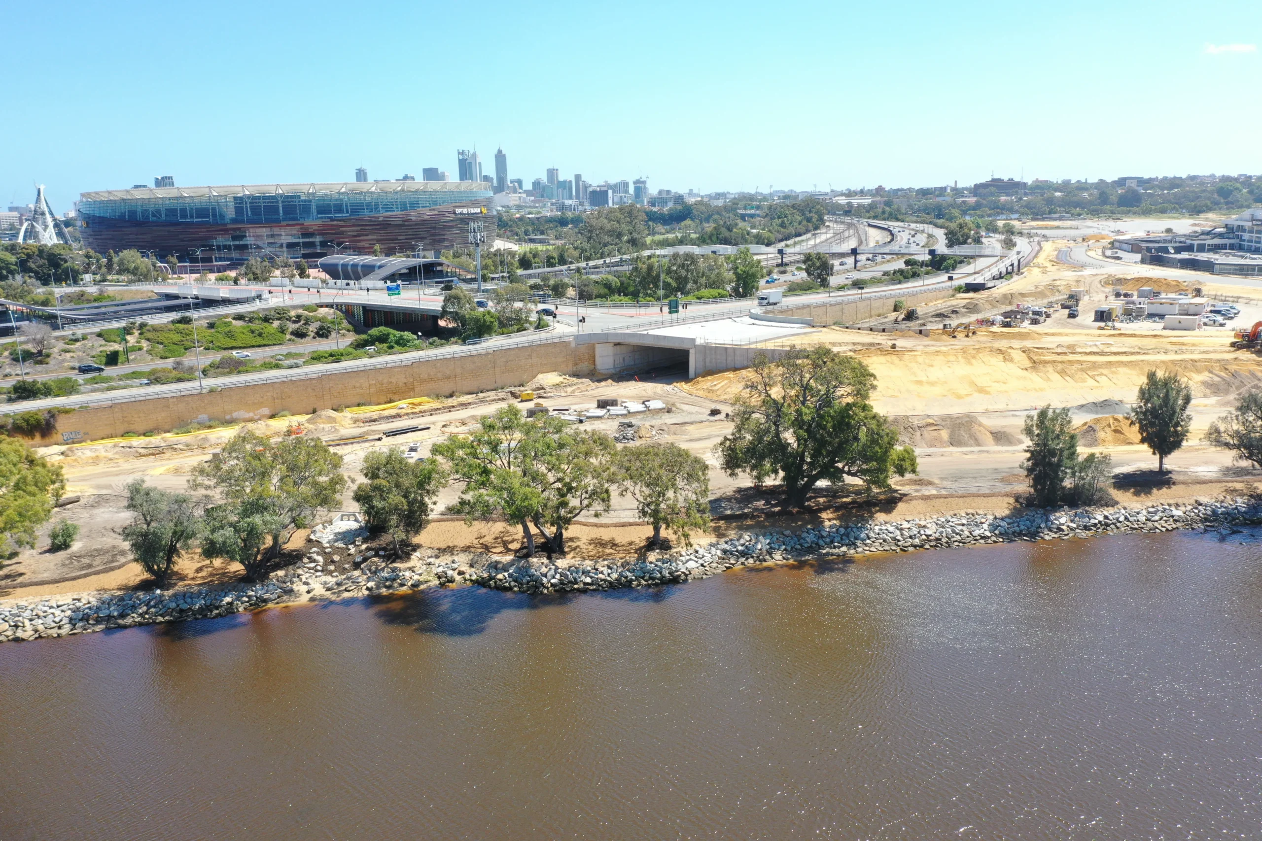 Golden Group, the investor for the Transit-oriented Development, has undertaken a project consisting of high-density residential, retail, hospitality, and commercial land uses. This development is strategically located on the banks of the Swan River, adjacent to Perth’s new Optus Stadium and Crown Perth resort in East Perth.