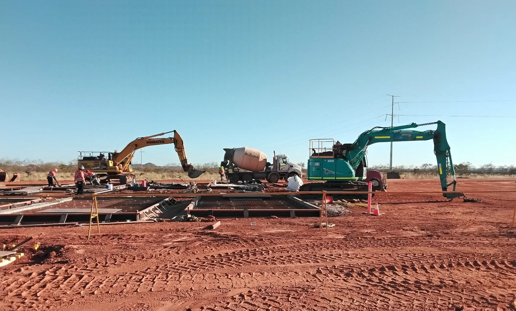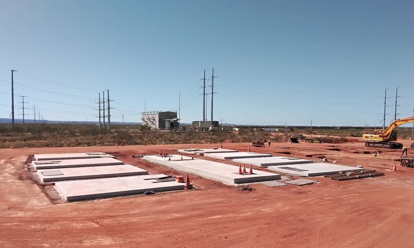 DCL’s scope included the supply and installation of all required formwork, reinforcement, concrete, HD Manufactured cast-in frames, plates, and bolts for the construction of the following elements, which will later form the basis of the electrical storage infrastructure. The project consists of a total of six BESS areas, which will house the batteries required. Each BESS consists of a total of 57 varying-sized slabs and 79 electrical pits of various sizes and depths.