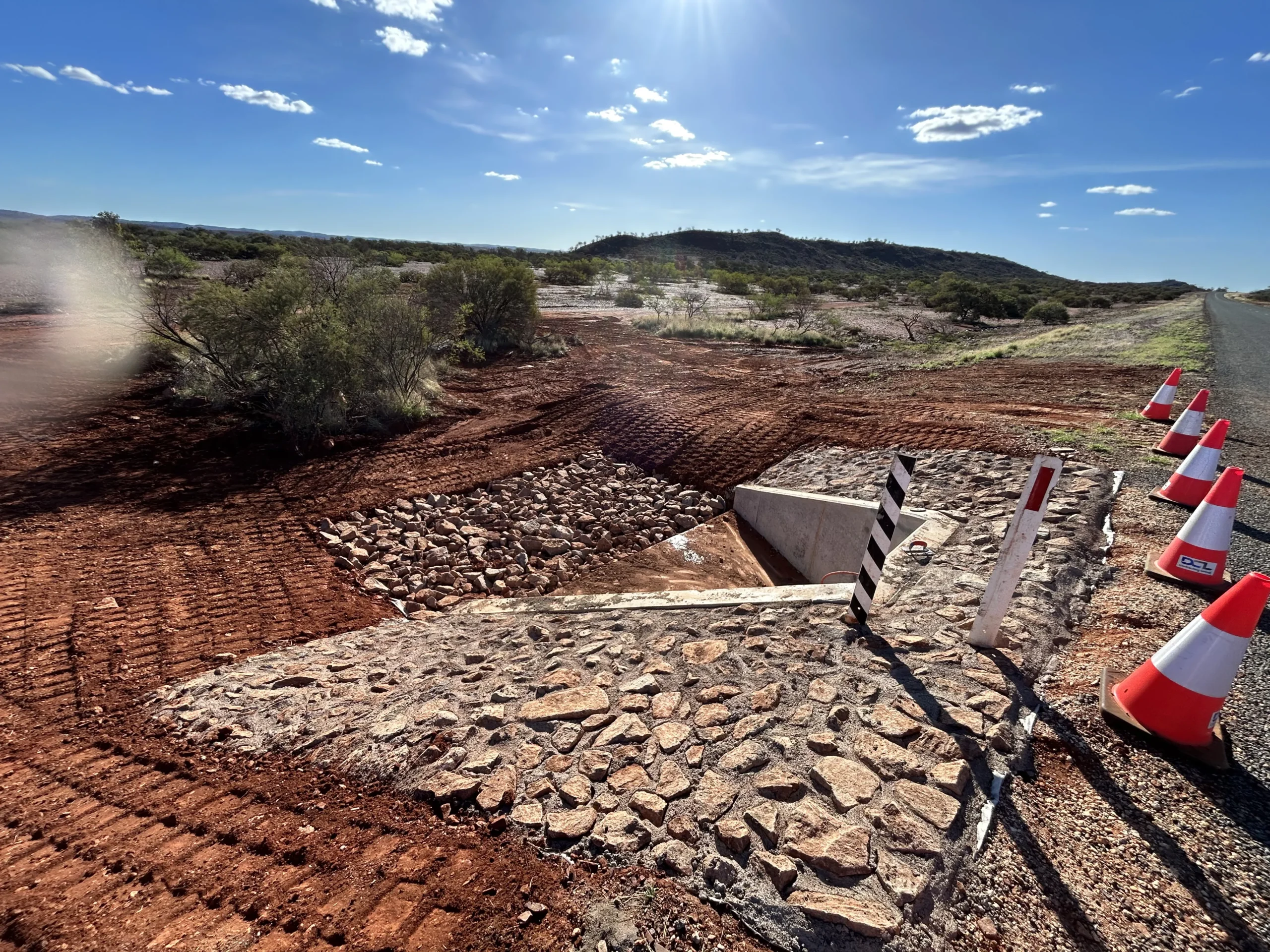 Removal of existing drainage and cattle grid structures and replacement with culverts. Included all works associated with replacement of road, including substate and asphalting to MRWA standards, traffic management and associated infrastructure works. It was undertaken on a busy regional road, with 24/7 traffic management and diversions without incident or issue. In summary the following were included: