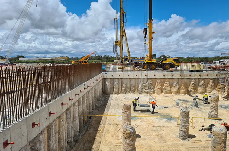 DCL worked in conjunction with Geotechnical Engineering Pty Ltd (Geotech), a subsidiary of Acciona, and we played a pivotal role in the early civil works of the East Rockingham Waste to Energy (ERWTE) project in Perth, Western Australia. Their primary responsibility was the execution of the secant wall piling works, essential for the structural integrity of the facility’s bunker area along with over 480 piles from 600-1200mm diameter and up to 34 meters deep across the project.